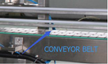 Bruker transportbånd for mating av flasker, og det er frekvensstyringssystem.