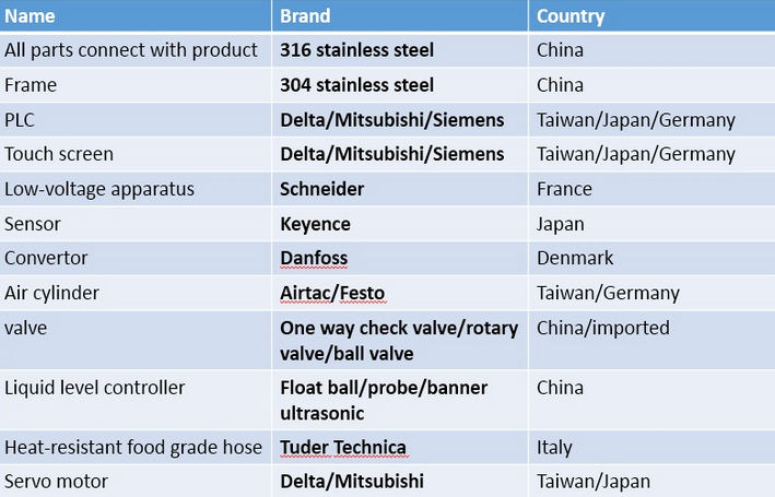 3. Alle komponentene som kommer i kontakt med produkt er laget av 316 L rustfritt stål importert og behandlet av CNC maskiner.